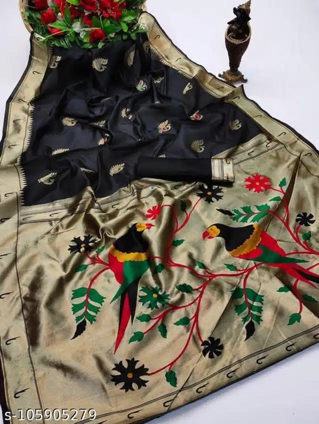 Banarasi Silk Saree With Blouse For Women (Blue, 6.3M)